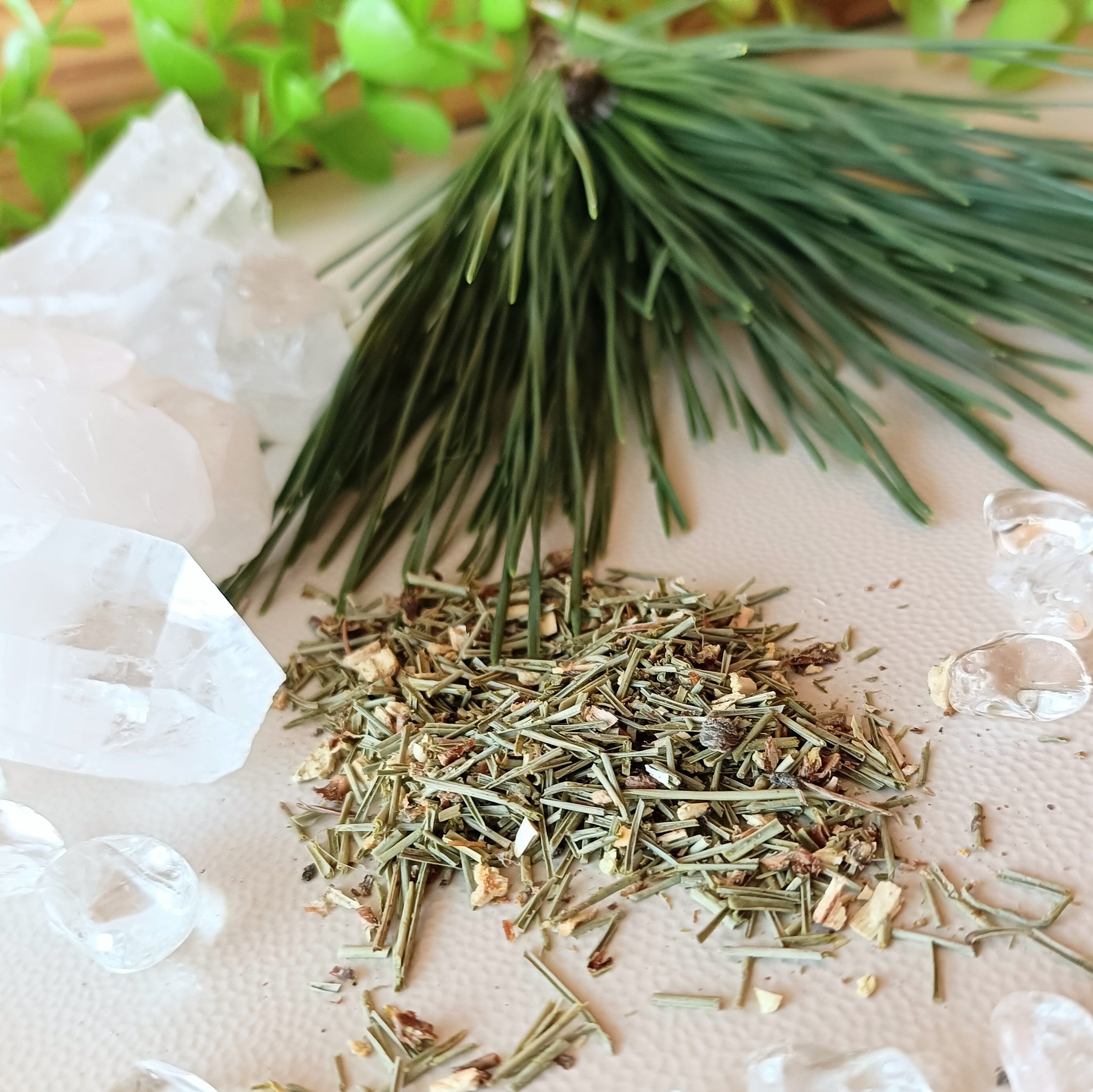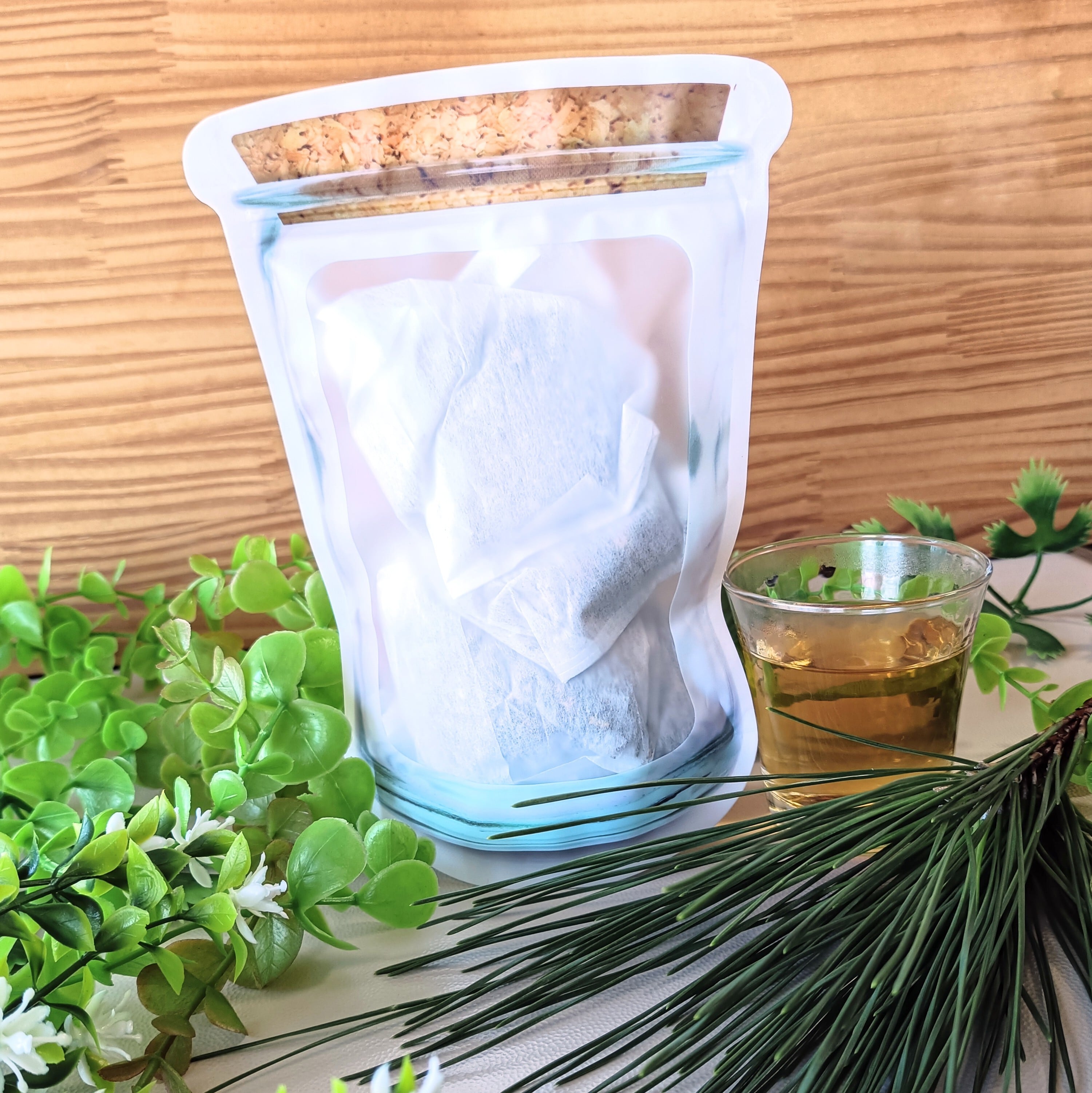 国産の野生松から採取した松葉を使用。湿気を避けて保存すれば1年以上はもちます。