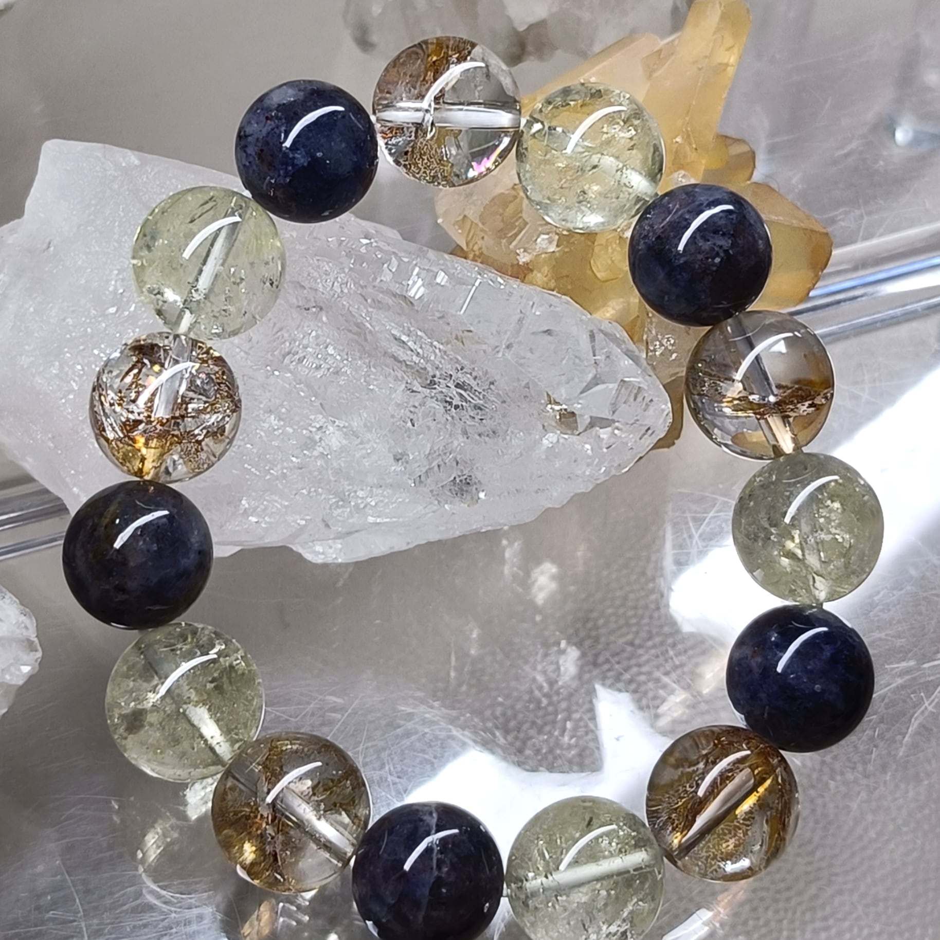 ✨201自分らしさを取り戻すアイオライト✨金運アップゴールドシャンパン水晶✨元気活力アップ↑↑気分スッキリレモン水晶✨運気UPブレスレット