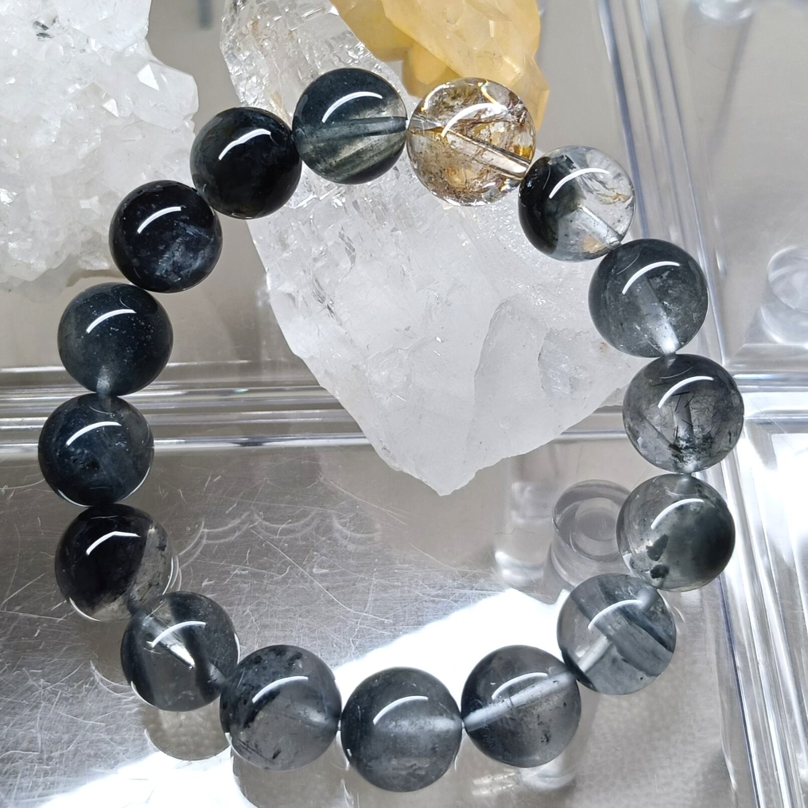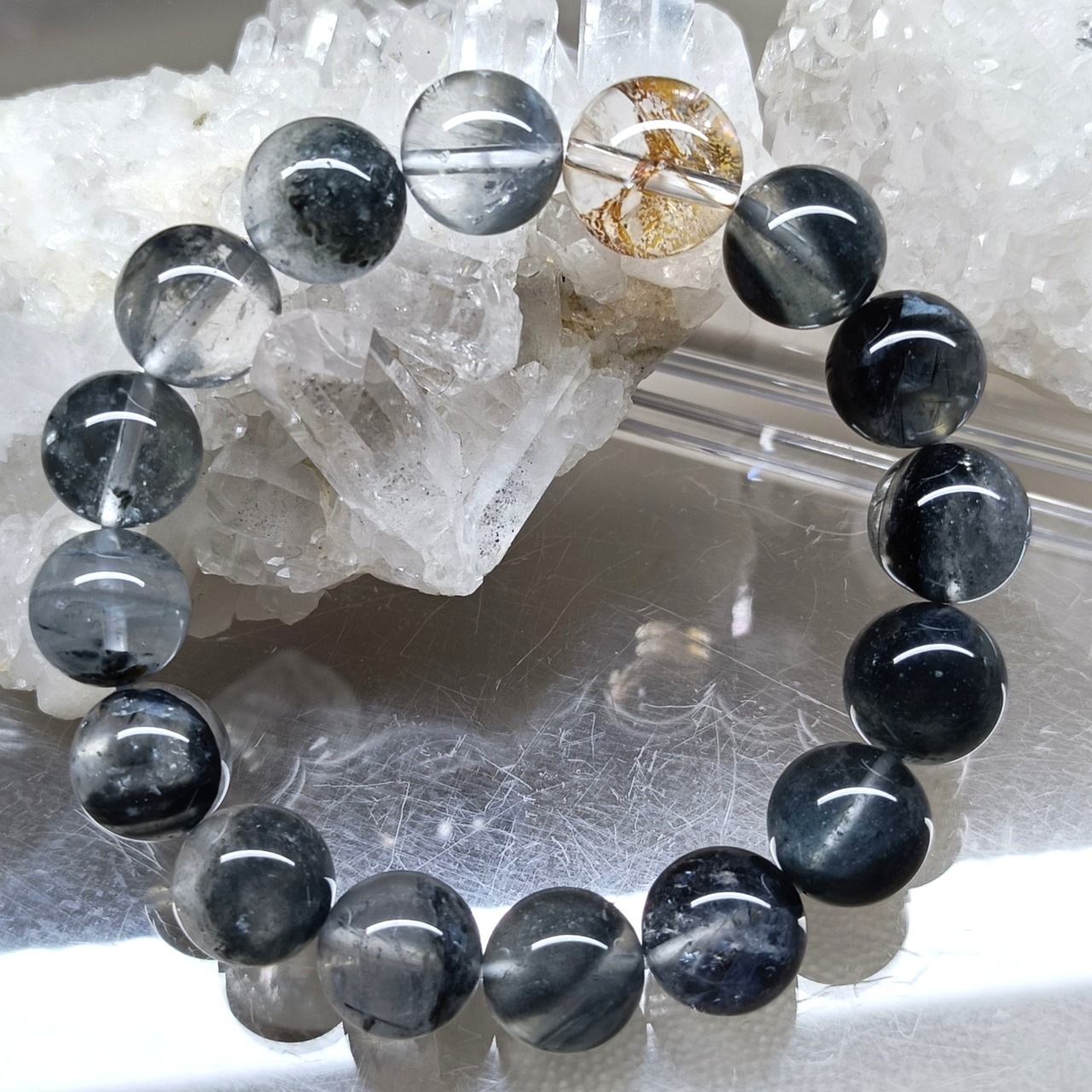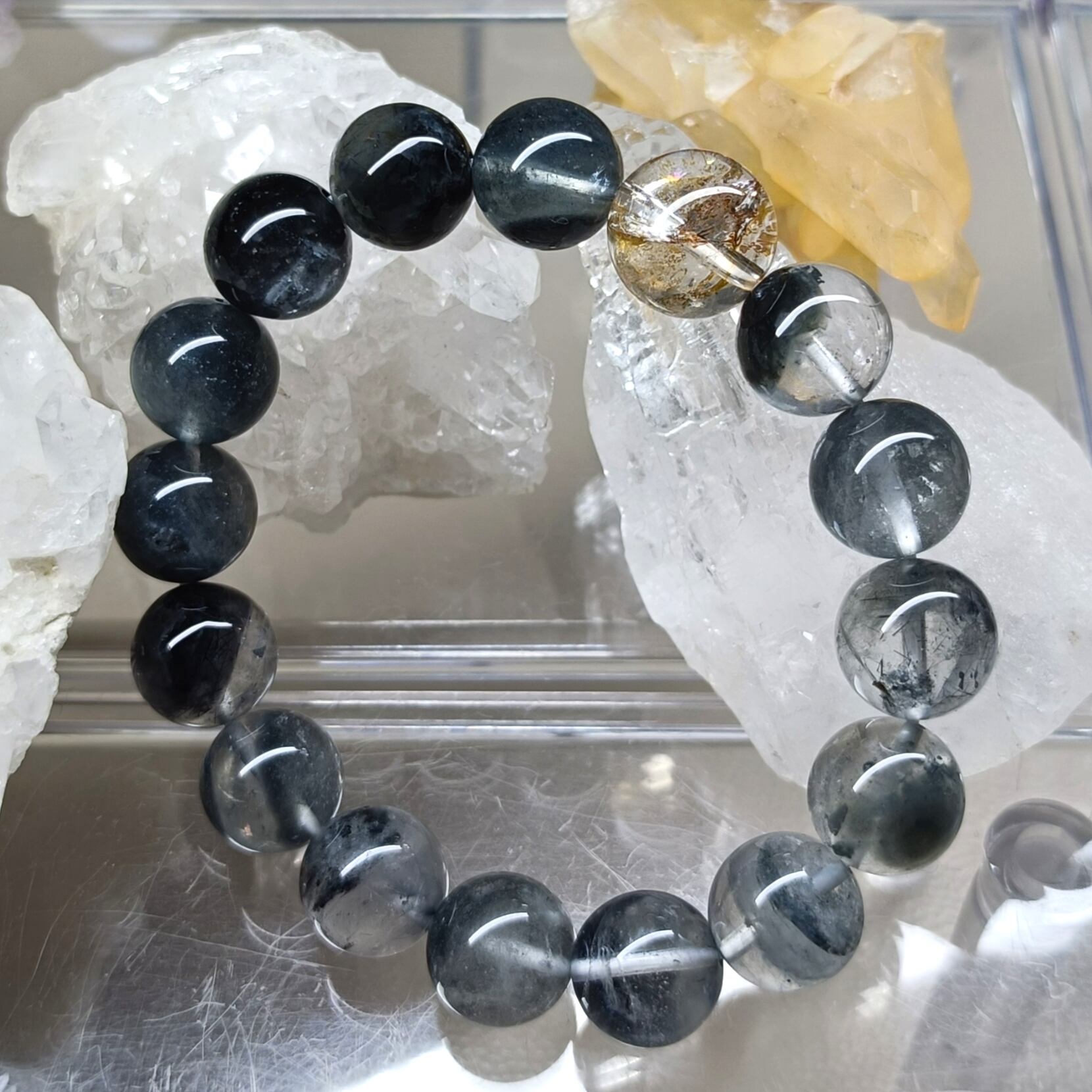 トルマリンとルチルクォーツを組み合わせた石は、心身の保護、精神的な強化、そして運気向上に効果があると言われています。特に、トルマリンの「邪気を跳ね返す力」とルチルクォーツの「金運・財運」や「勝利運」を招く力が相乗効果を発揮し、対人関係のストレスを和らげたり、仕事や人間関係の困難を乗り越えるための強いお守りになるとされます。