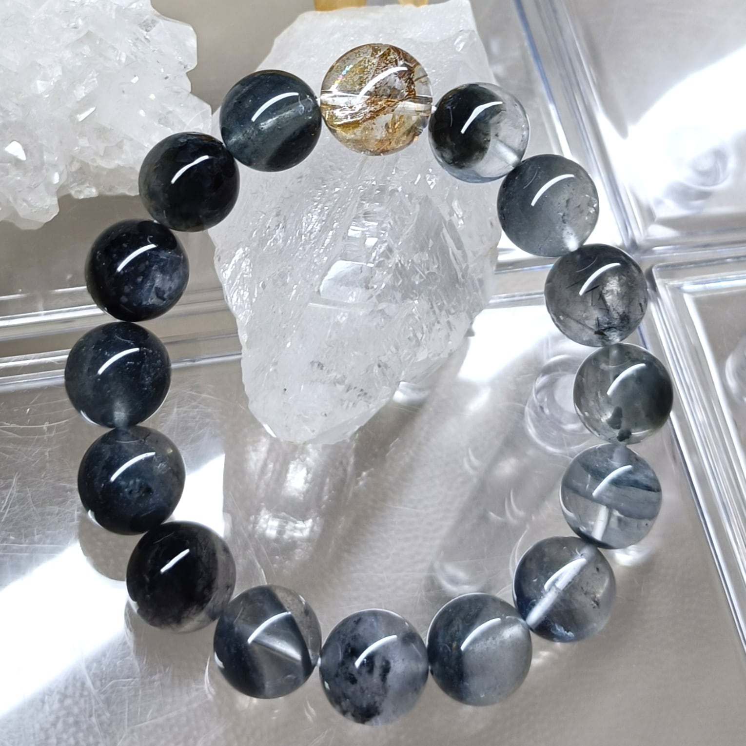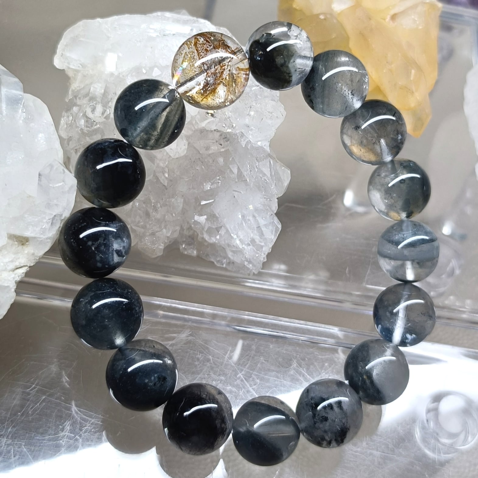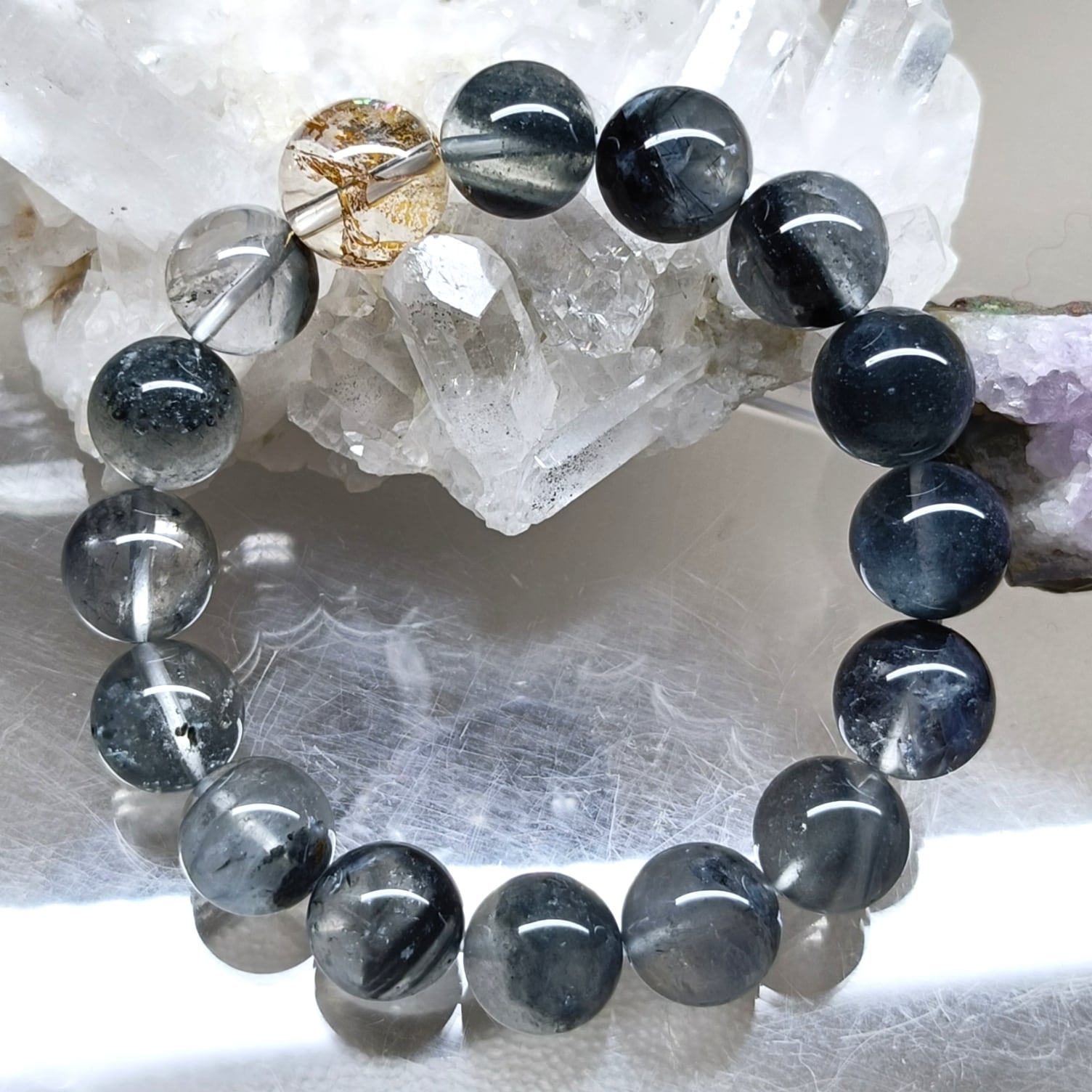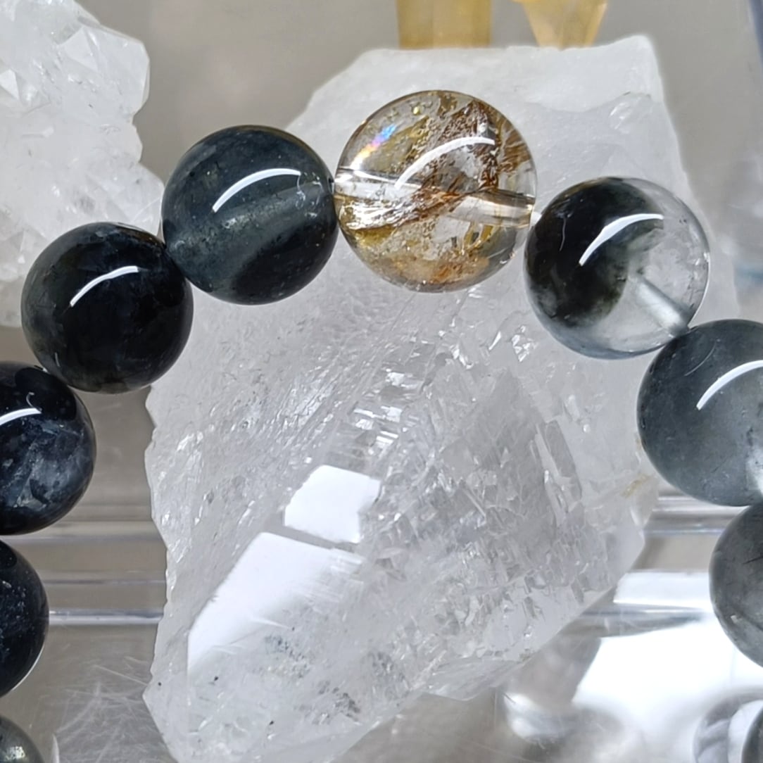 トルマリンとルチルクォーツを組み合わせた石は、心身の保護、精神的な強化、そして運気向上に効果があると言われています。特に、トルマリンの「邪気を跳ね返す力」とルチルクォーツの「金運・財運」や「勝利運」を招く力が相乗効果を発揮し、対人関係のストレスを和らげたり、仕事や人間関係の困難を乗り越えるための強いお守りになるとされます。