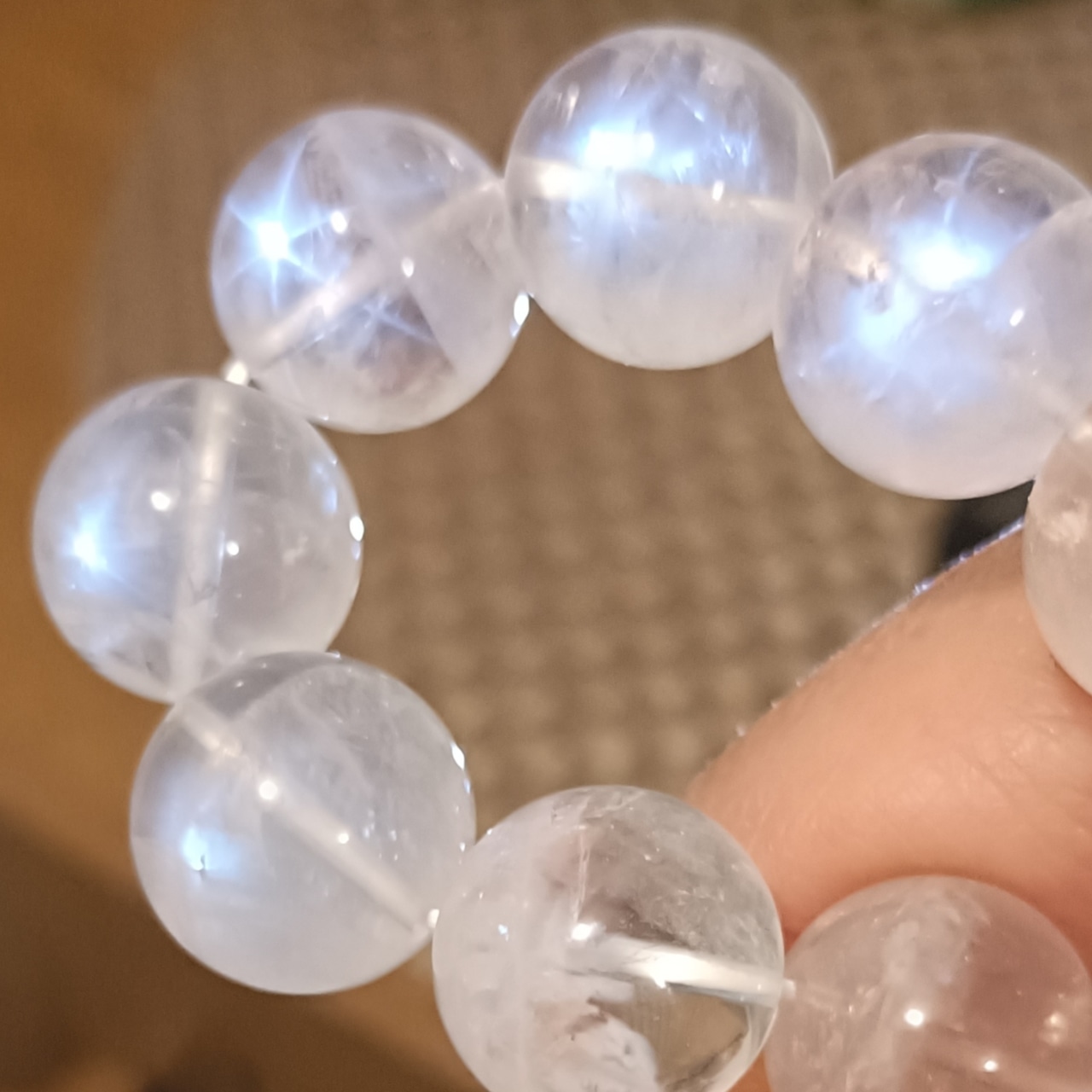 ✨石の内部に含まれる微細なルチルなどの針状結晶が特定の方向に整列することで、光を当てると星(スター)のような光の筋が現れる現象です。