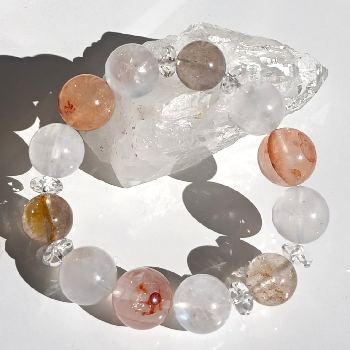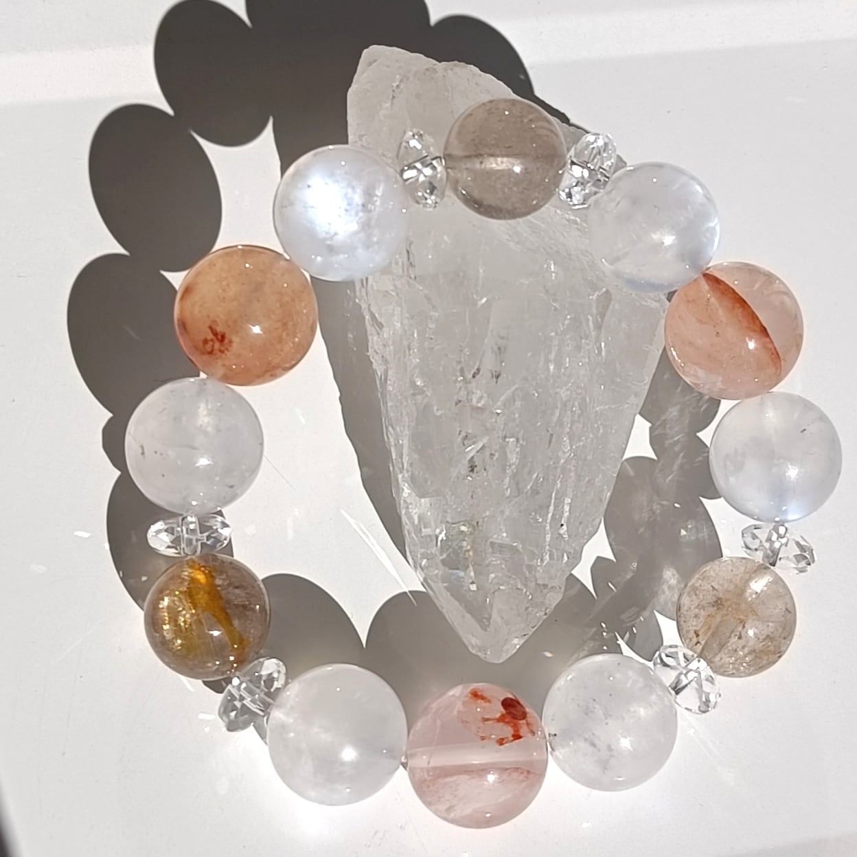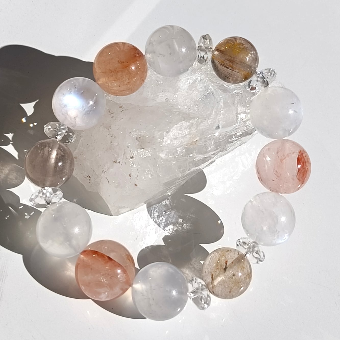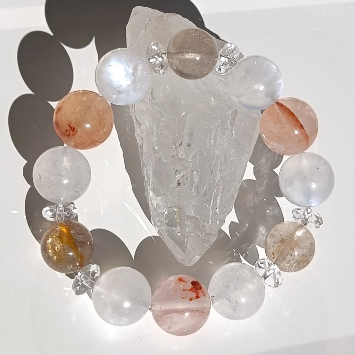 ライモナイトインクォーツは、ネガティブな感情や不安を浄化し、モチベーションや活力を高めて成功へと導く効果が期待されるパワーストーンです。心の曇りや迷いを払拭し、冷静な判断力や決断力、前向きな行動力を与え、ビジネス運や金運アップ、精神的な安定にも良いとされ、オーロラクォーツとも呼ばれ美しい輝きで希望を支えるとも言われます。