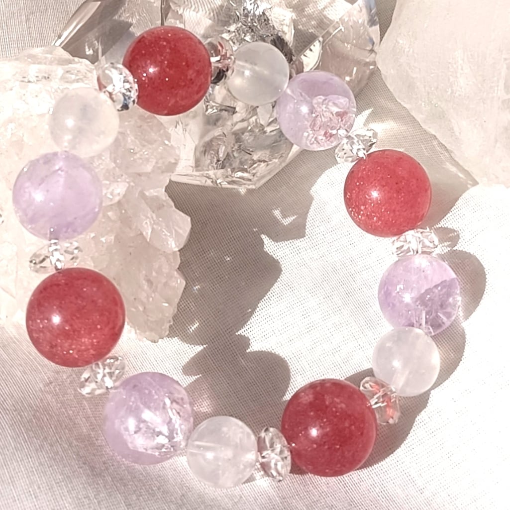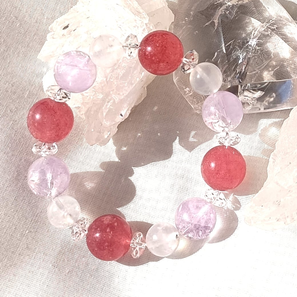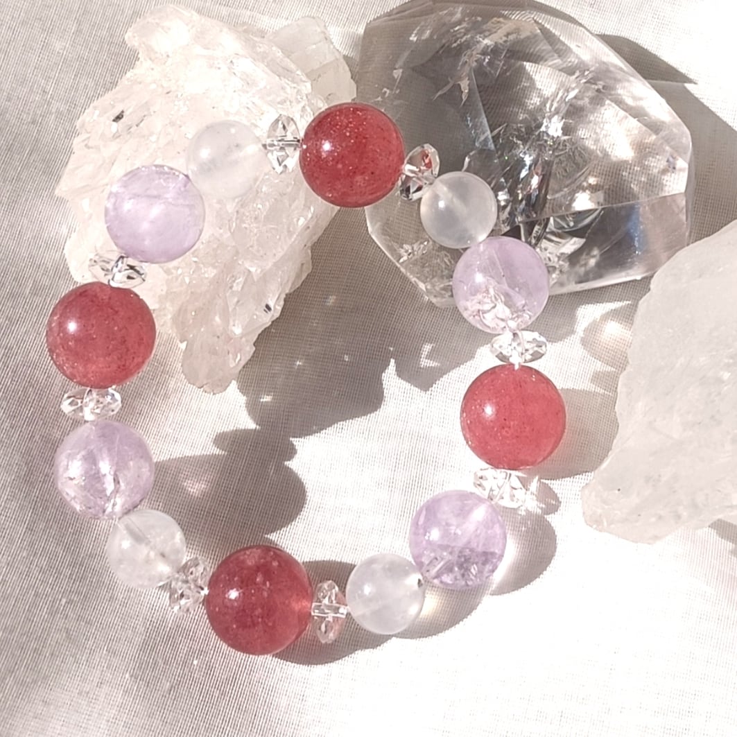212✨癒しと心の安定✨愛と調和のストロベリークォーツとピンクアメジストのブレスレット