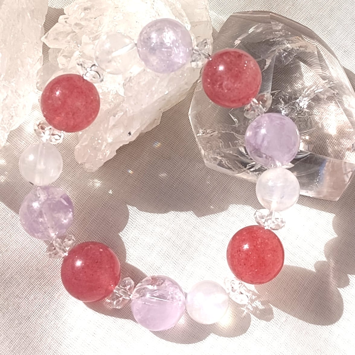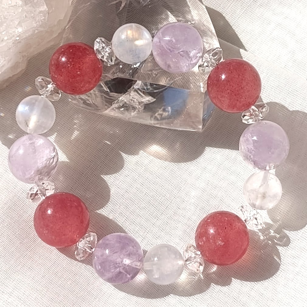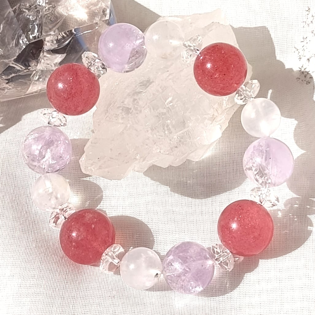 212✨癒しと心の安定✨愛と調和のストロベリークォーツとピンクアメジストのブレスレット
