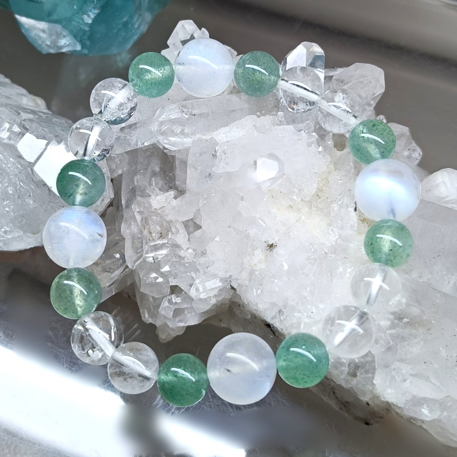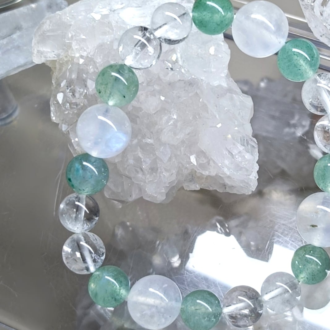 ✨215✨愛と癒しブルームーンストーン.健康.浄化.高次元エネルギーヒマラヤ水晶とグリーンストロベリー水晶